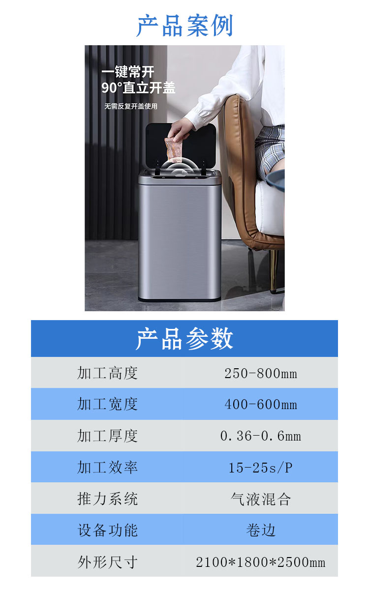 本文介紹的是一款異形雙頭卷邊機,產(chǎn)品放進模具中,按下自動啟動按鈕,模具推到固定位置,兩側(cè)推進壓緊,上油缸推下碰到模具后漲緊產(chǎn)品上缸繼續(xù)往下推卷邊到設定位置,下油缸推上卷邊到設定位置,完成雙頭卷邊,全部上下油缸復位、左右氣缸復位,模具退出拿出產(chǎn)品。(公司根據(jù)客戶需求,為客戶量身定制適合的設備,歡迎新老客戶咨詢了解)